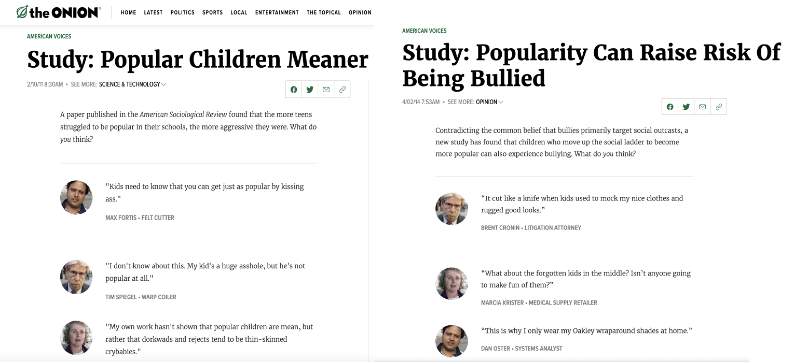 The Washington Post, “ Most, least popular kids least likely to bully, study says.” Valerie Strauss